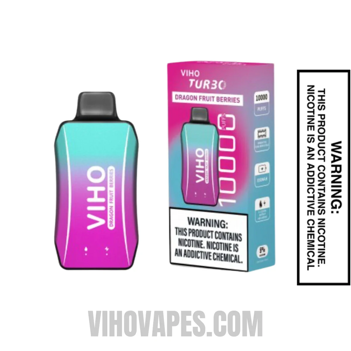 Enjoy our Viho Dragon Fruit Berries Turbo Vape. This is more than just a vape; it's an adventure for your taste buds. Elevate your vaping experience today with our Viho Dragon Fruit Berries Turbo 10000 Vape, and let us take you on a flavorful adventure that you won't forget.