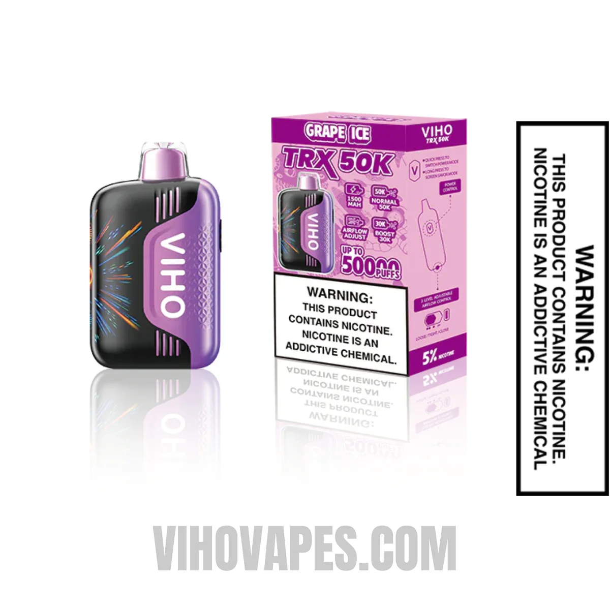 Grape Ice VIHO TRX 50K Disposable Vape offers a sensational vaping experience you won't want to miss. Packed with a juicy burst of sweet grape and complemented by a refreshing icy finish, this disposable vape delivers a smooth, satisfying hit every time. Whether you're on the go or just want a hassle-free vaping experience, the Grape Ice VIHO TRX Flavor Vape is the perfect option.