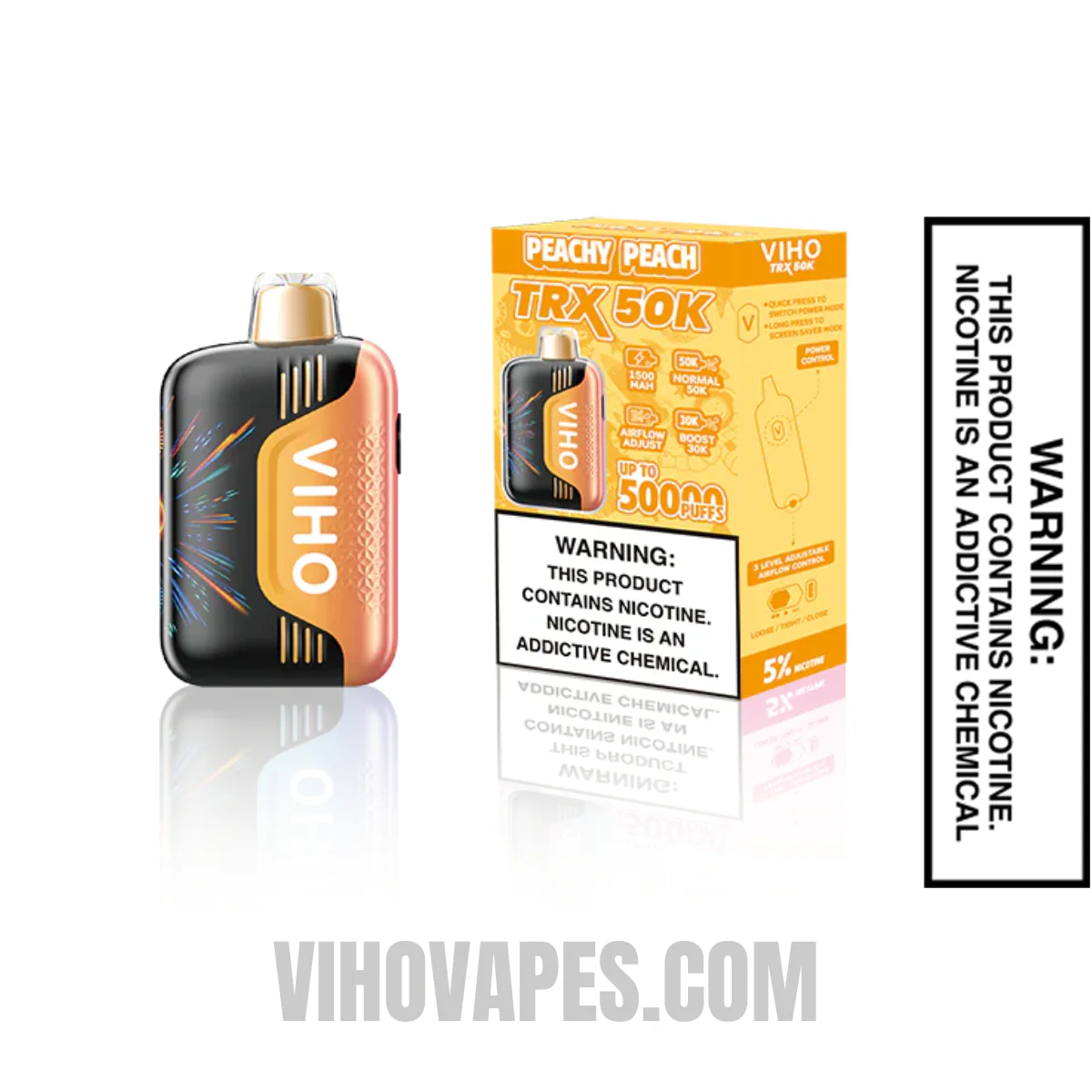 At Viho Vape, we’ve ensured that Peachy Peach VIHO TRX 50K Vape meets the highest standards, so you can trust in its quality. Our customers love the smooth hits and the sweet, juicy peach sensation that fills every puff. Ready to elevate your vaping game? Get your hands on the VIHO Peachy Peach Flavor Vape today from Viho Vapes and enjoy a refreshing experience with every puff!