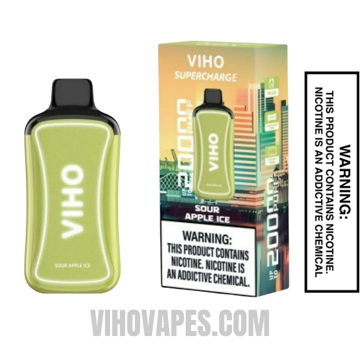 Experience the tangy burst of sour apple on the inhale, followed by a frosty exhale that leaves a lingering coolness on your palate. Whether you're new to vaping or a seasoned enthusiast, our Viho Sour Apple Ice Supercharge 20000 puffs Vape promises a premium vaping experience with every puff.