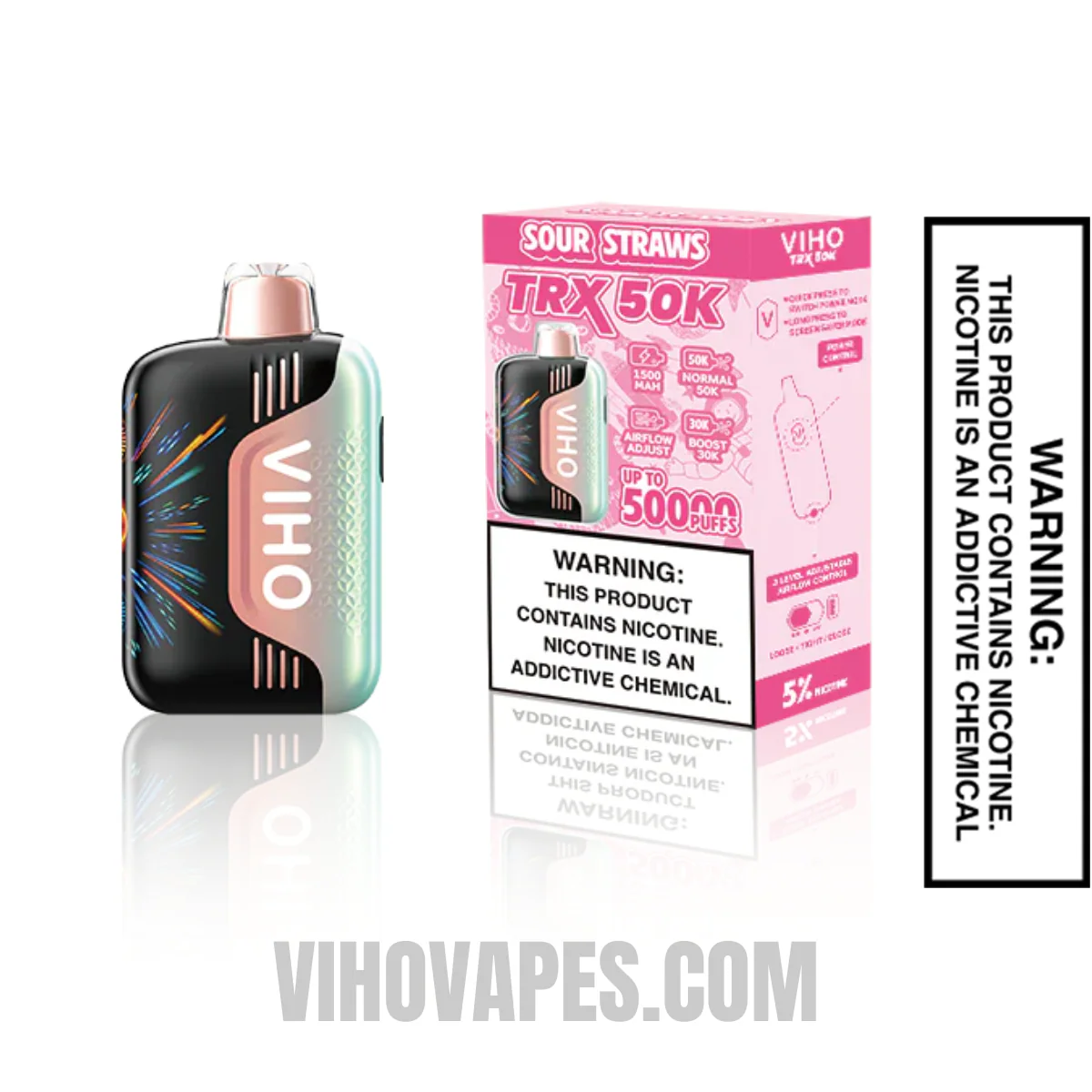 Upgrade your vape experience with the Sour Straws VIHO TRX 50K Disposable Vape. Our focus on delivering premium flavor and exceptional performance, this vape will quickly become your go-to for those sweet and sour cravings. Don’t wait – get your VIHO Sour Straws Flavor Vape now at Viho Vapes!